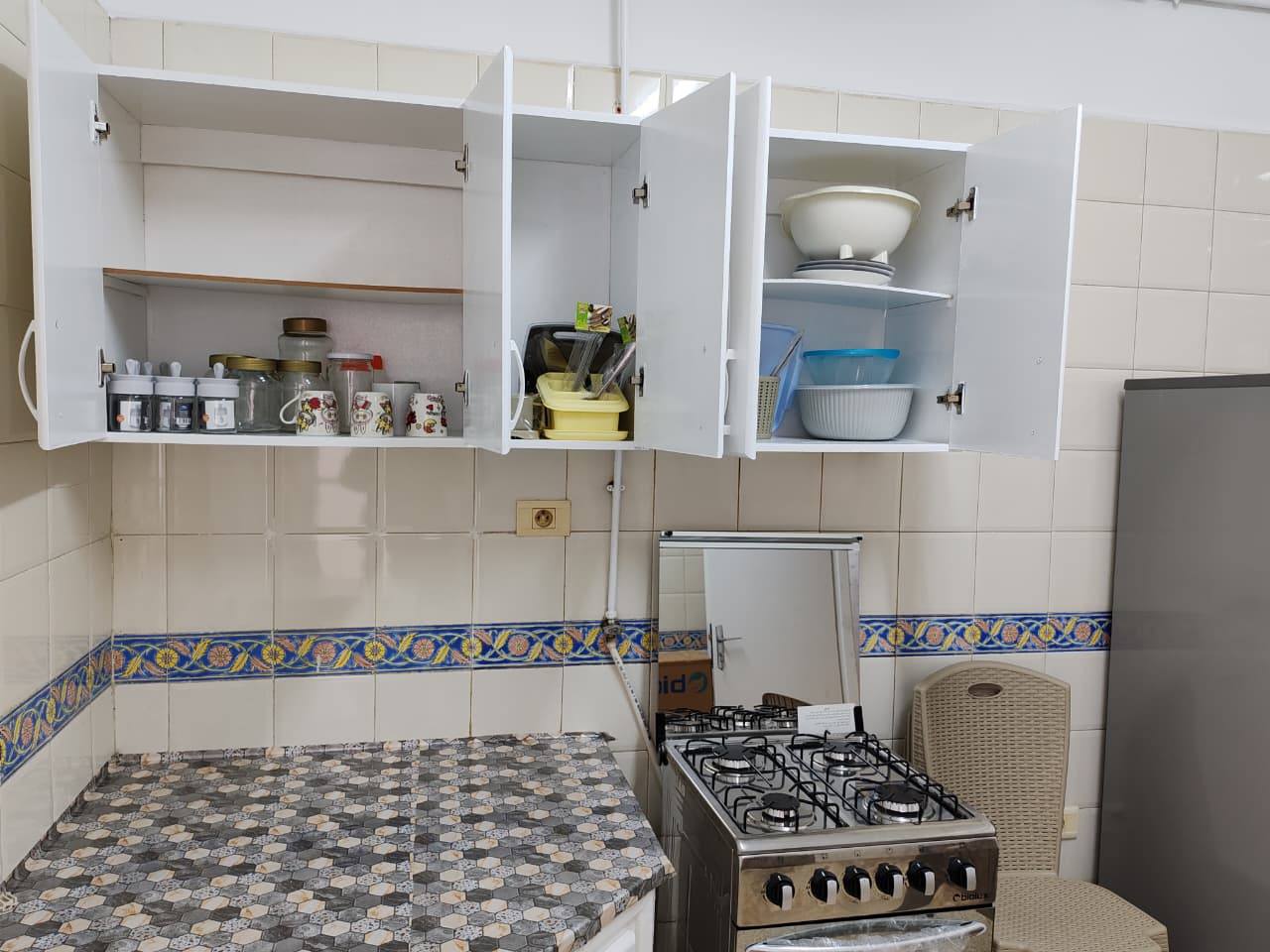À louer, un appartement S+2 entièrement meublé, idéalement situé à Sahloul, à proximité immédiate de l’hôpital, dans un emplacement stratégique proche de toutes les commodités.
