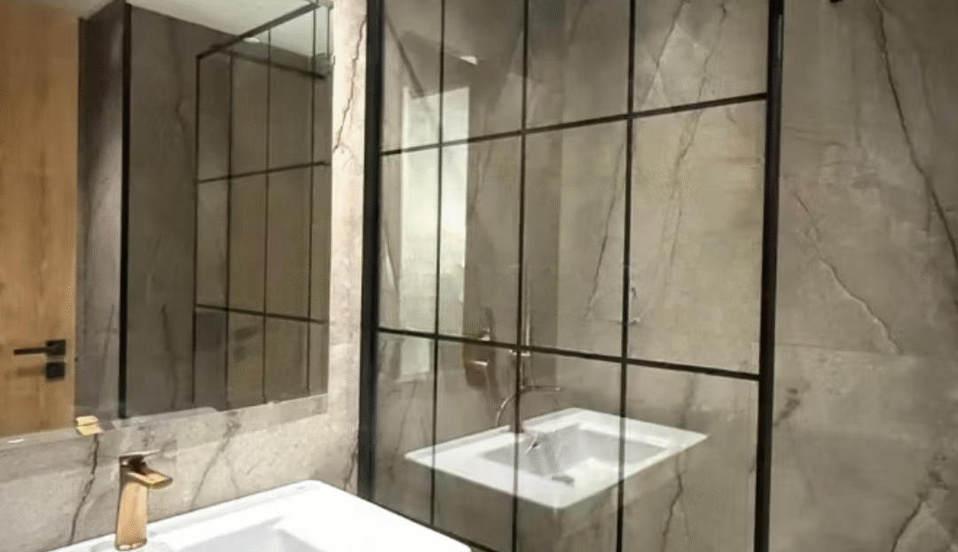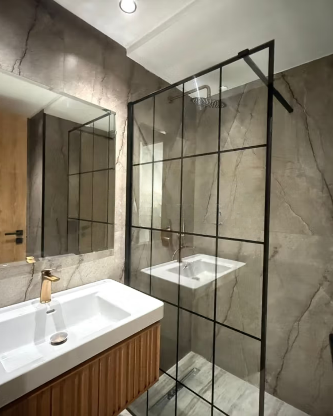 Salle d’eau : Salle de douche à l’italienne au design contemporain.