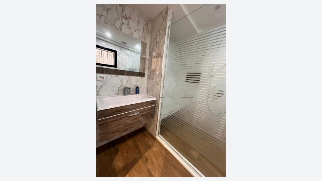 Le bien dispose également de la climatisation, du chauffage central et d’un garage privé sécurisé, garantissant confort et tranquillité au quotidien.