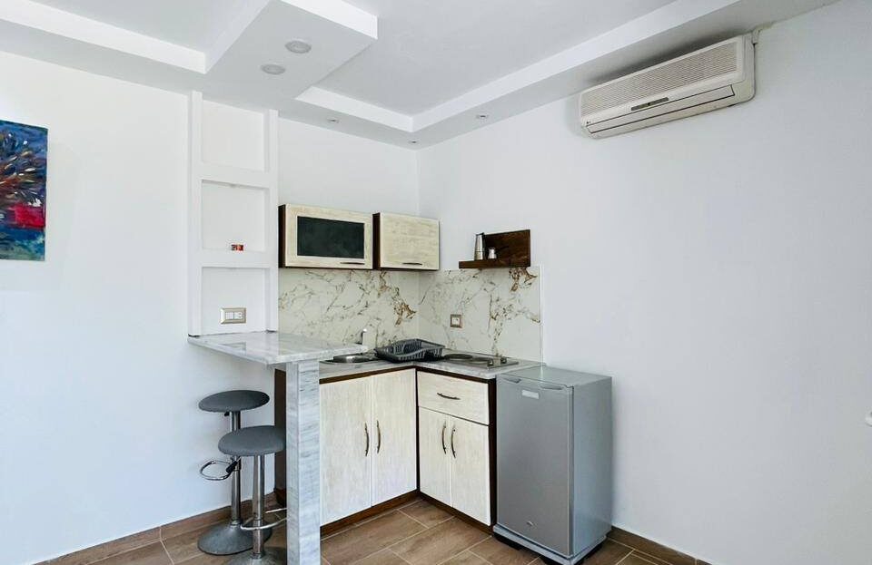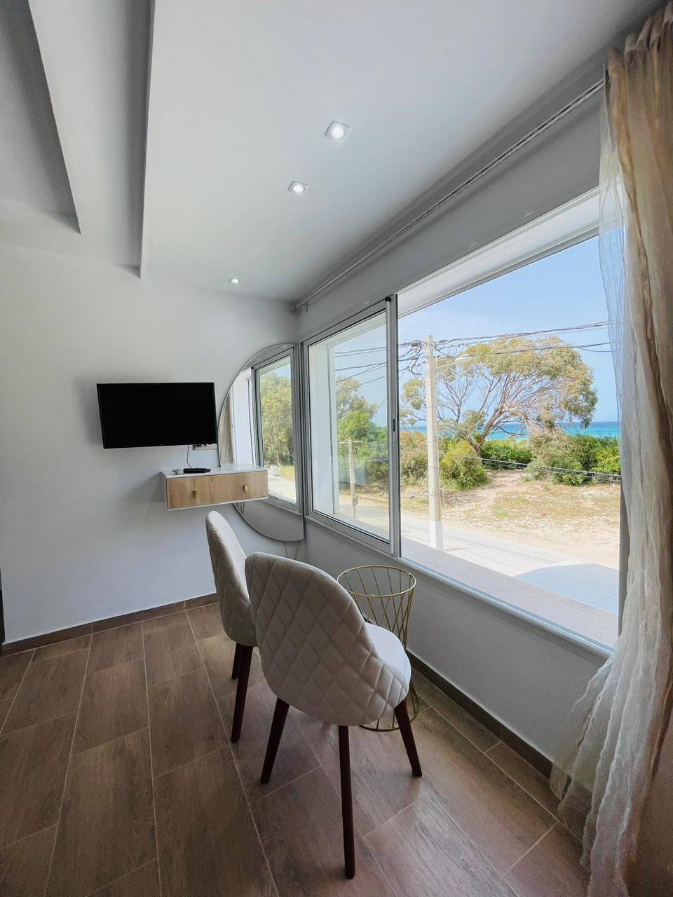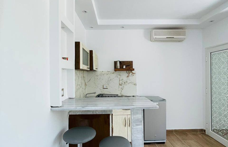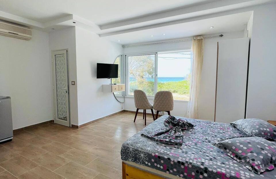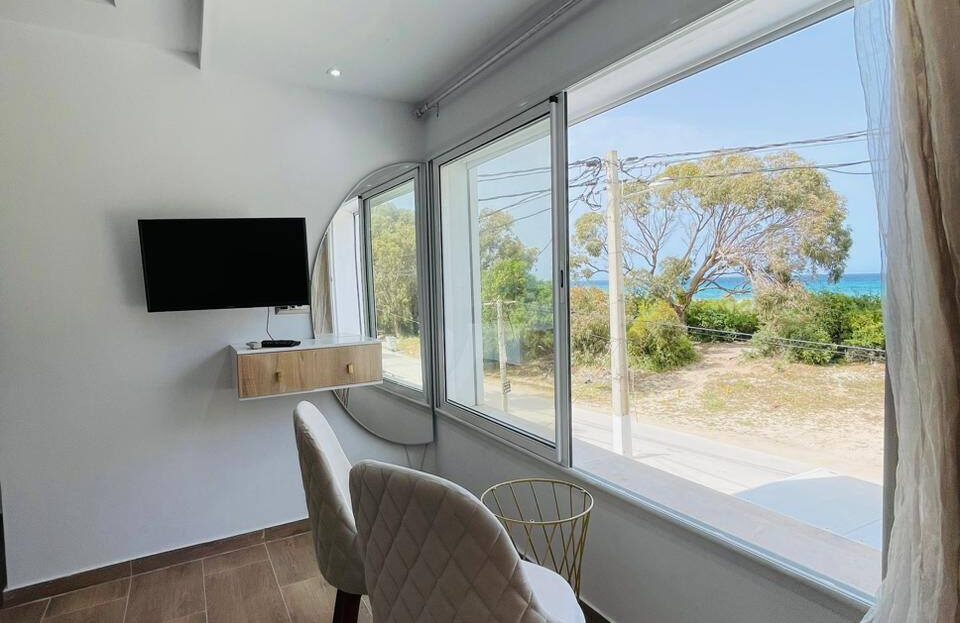 À louer pour les vacances, un appartement S+0 situé au 1er étage, pied dans l’eau, avec une vue panoramique sur la mer.