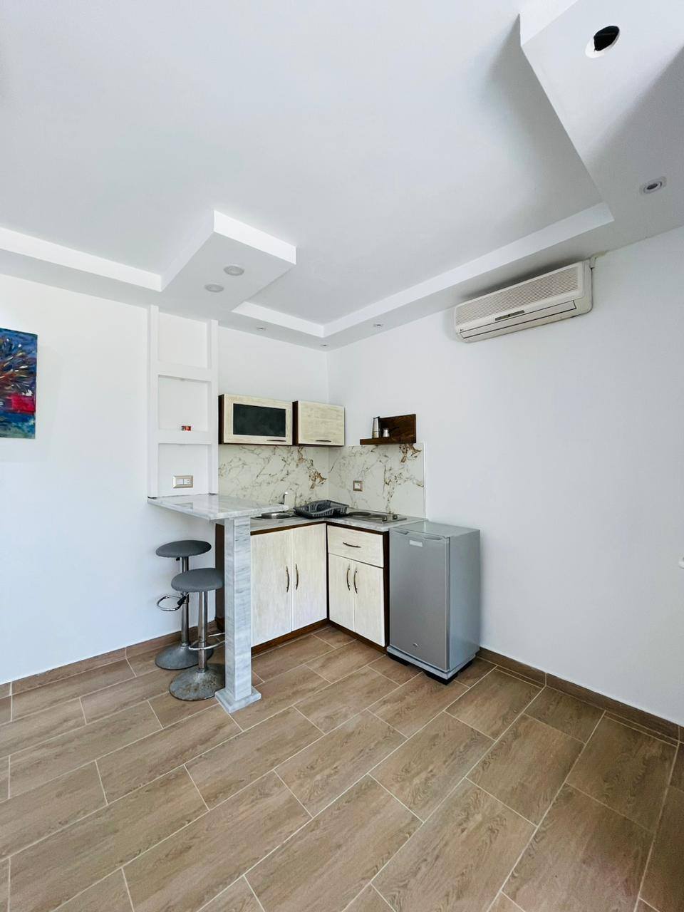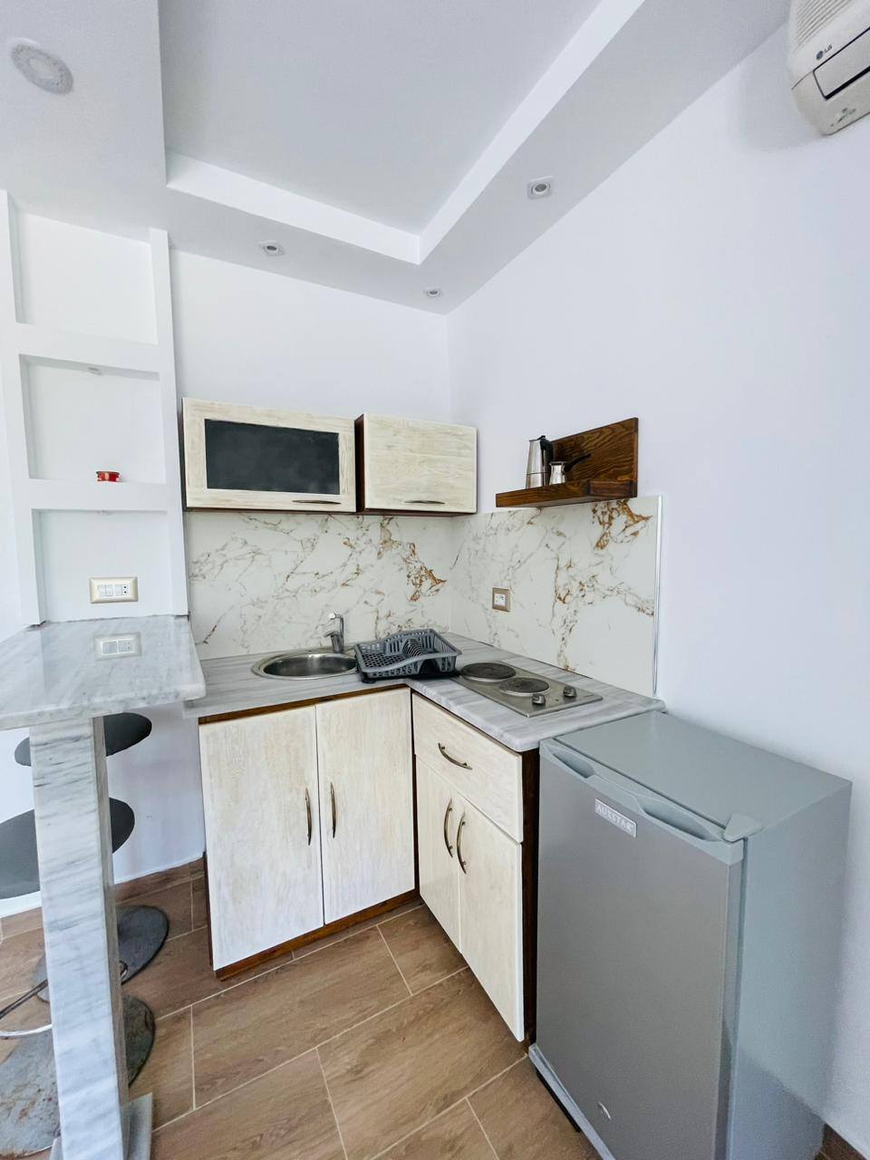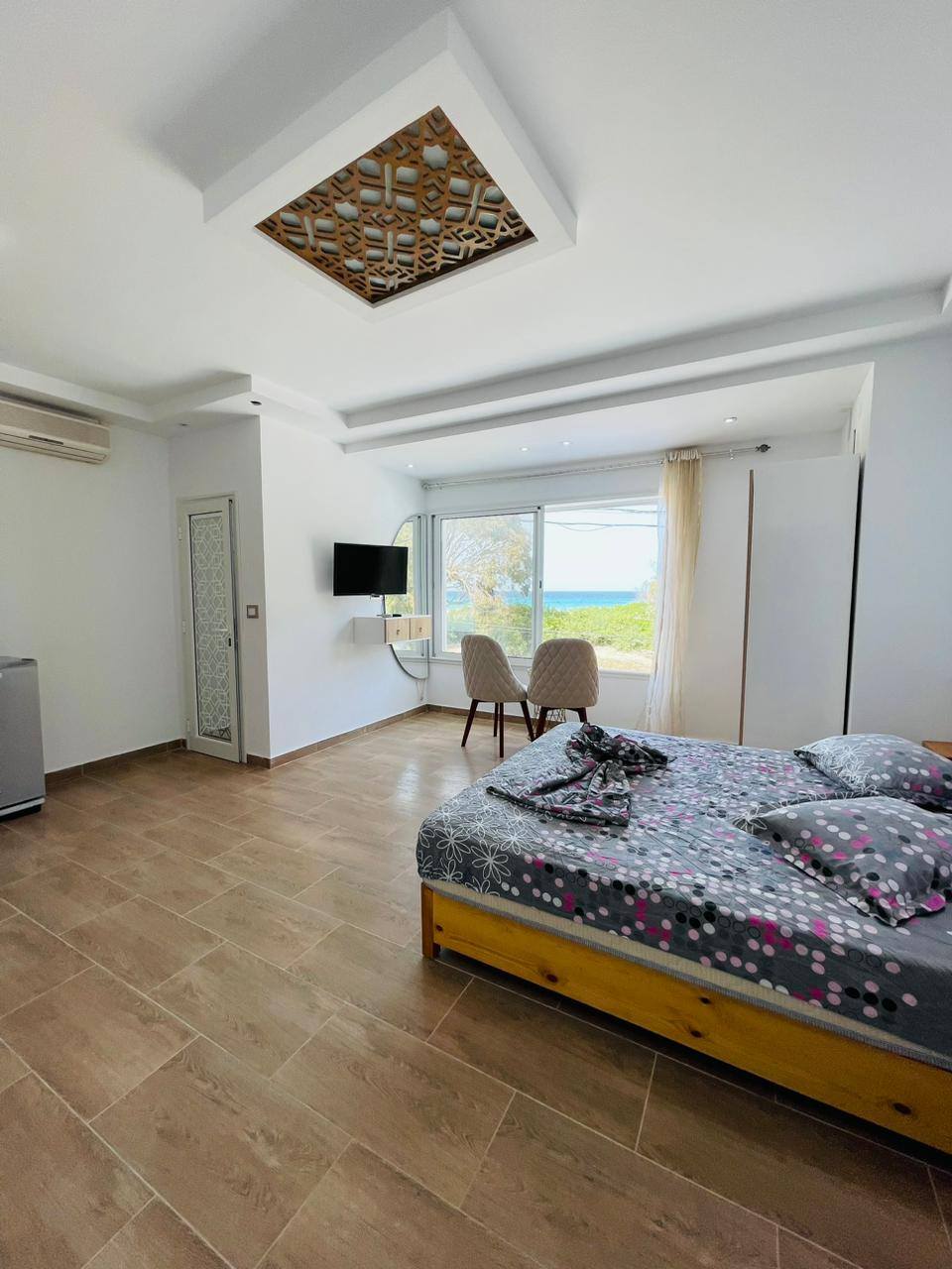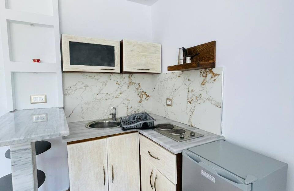 À louer pour les vacances, un appartement S+0 situé au 1er étage, pied dans l’eau, avec une vue panoramique sur la mer.