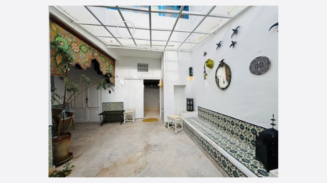 Charmante maisonnette indépendante située au rez-de-chaussée, au cœur du village de Sidi Bou Saïd, avec un style typiquement tunisien et une atmosphère paisible.