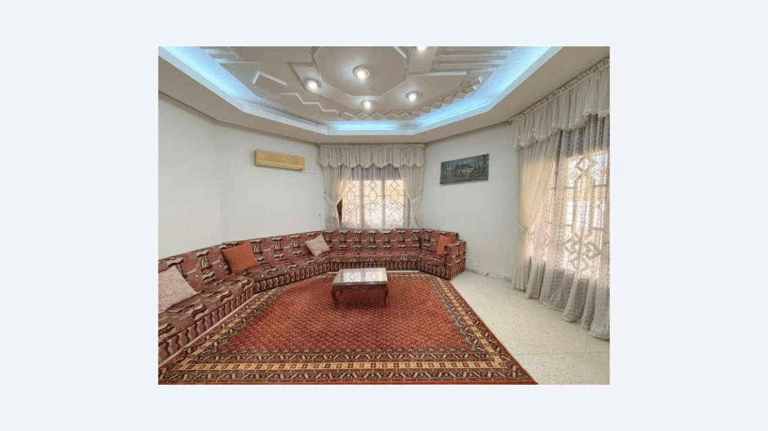 À louer, une villa individuelle S5, située dans un quartier chic et calme à Kaied Mohamed. La propriété est entourée d’un grand jardin qui fait le tour de la villa, offrant un cadre de vie agréable.